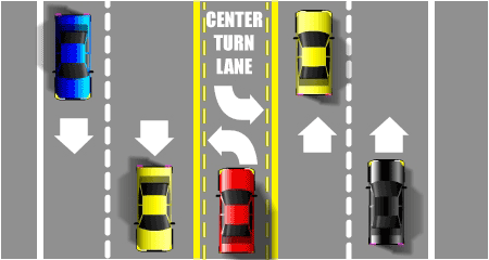 3) Center turn lane (faixa para retorno), existe uma área entre as duas faixas, para você fazer SOMENTE a conversão.4) Virar à direita com o sinal fechado: Uma das regras do trânsito nos EUA permite que, estando-se na faixa da direita, vire-se à direita mesmo quando o sinal encontra-se fechado. Porém: