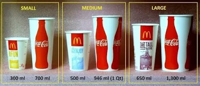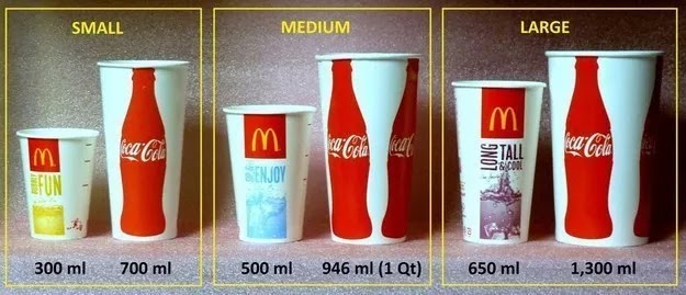 Nos supermercados, a maioria das embalagens são “tamanho família” (família de 28 pessoas, provavelmente).