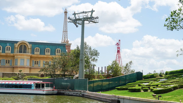 Como você pode ver acima, o sistema de gôndola Disney Skyliner estará viajando próximo ao pavilhão da França.