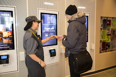 O atendimento sofreu mudança drástica, agora um concierge recebe você e explica como o novo sistema. Depois de explicar a nova concepção da lanchonete, ele encaminha o cliente até um dos terminais eletrônicos de auto-atendimento.