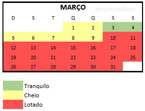 Lotação bem alta nos anos em que o Spring Break americano, o carnaval e/ou a Páscoa caem em Março.