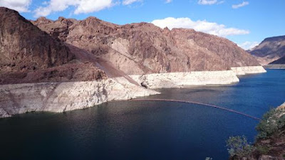 A Represa Hoover Dam em Las Vegas fica localizada entre os estados de Nevada e o Arizona e foi criada para controlar as águas do Rio Colorado e para abastecer toda a cidade de Las Vegas, que fica no meio do deserto e depende 100% da represa para seu abastecimento de água.