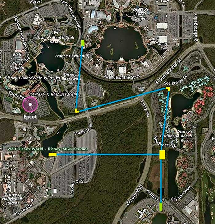 A imagem abaixo mostra qual seria o trajeto desse super teleférico da Disney.