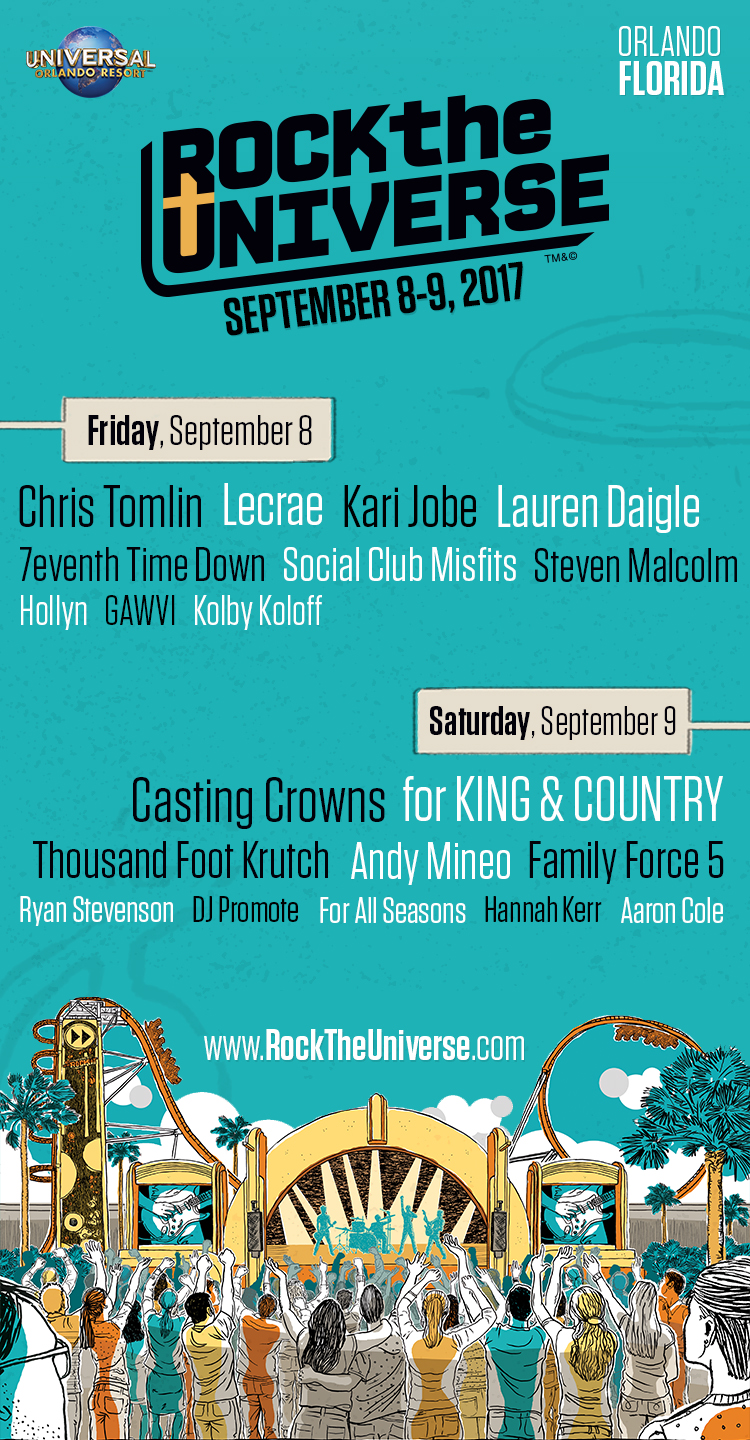 Esse ano o evento irá contar com alguns artistas vencedores de prêmios Grammy, Dove e Billboard que estiveram na cena musical cristã por décadas, assim como alguns rostos frescos. E, como sempre, as atrações da Universal Studios estarão abertas para os participantes durante a noite.